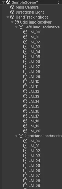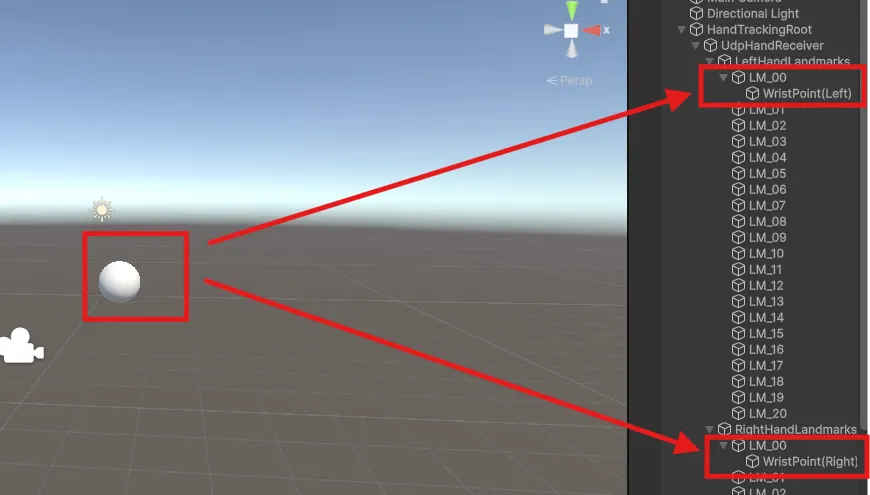 - Unity Scene에 양 손 랜드마크에 해당하는 Empty Object들을 생성한 후, 각 랜드마크들에 로컬 좌표를 적용한다.