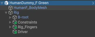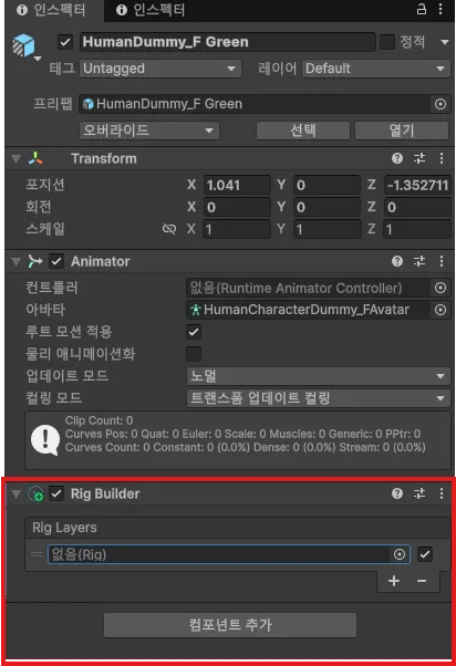 - 휴머노이드 프리팹 HumanDuumy_F Green (Animator, RigBuilder 컴포넌트)