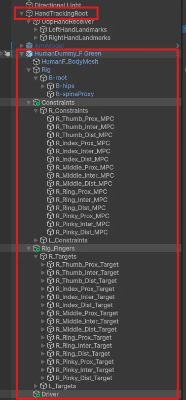 - MediaPipe에서 수신받은 랜드마크를 Unity에 매핑하는 HandTrackingRoot