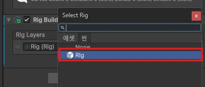 컨트롤 리그들을 모두 Rig의 자식으로 넣어주니, Rig 컴포넌트에서 Rig Layer를 인식할 수 있었다.